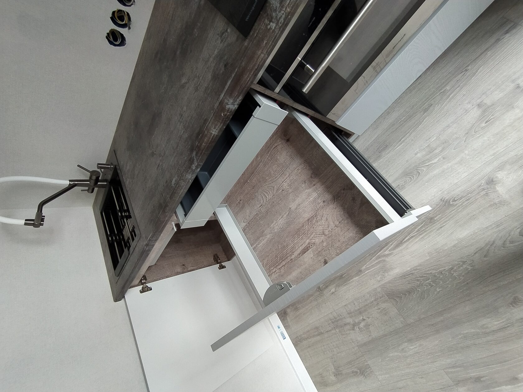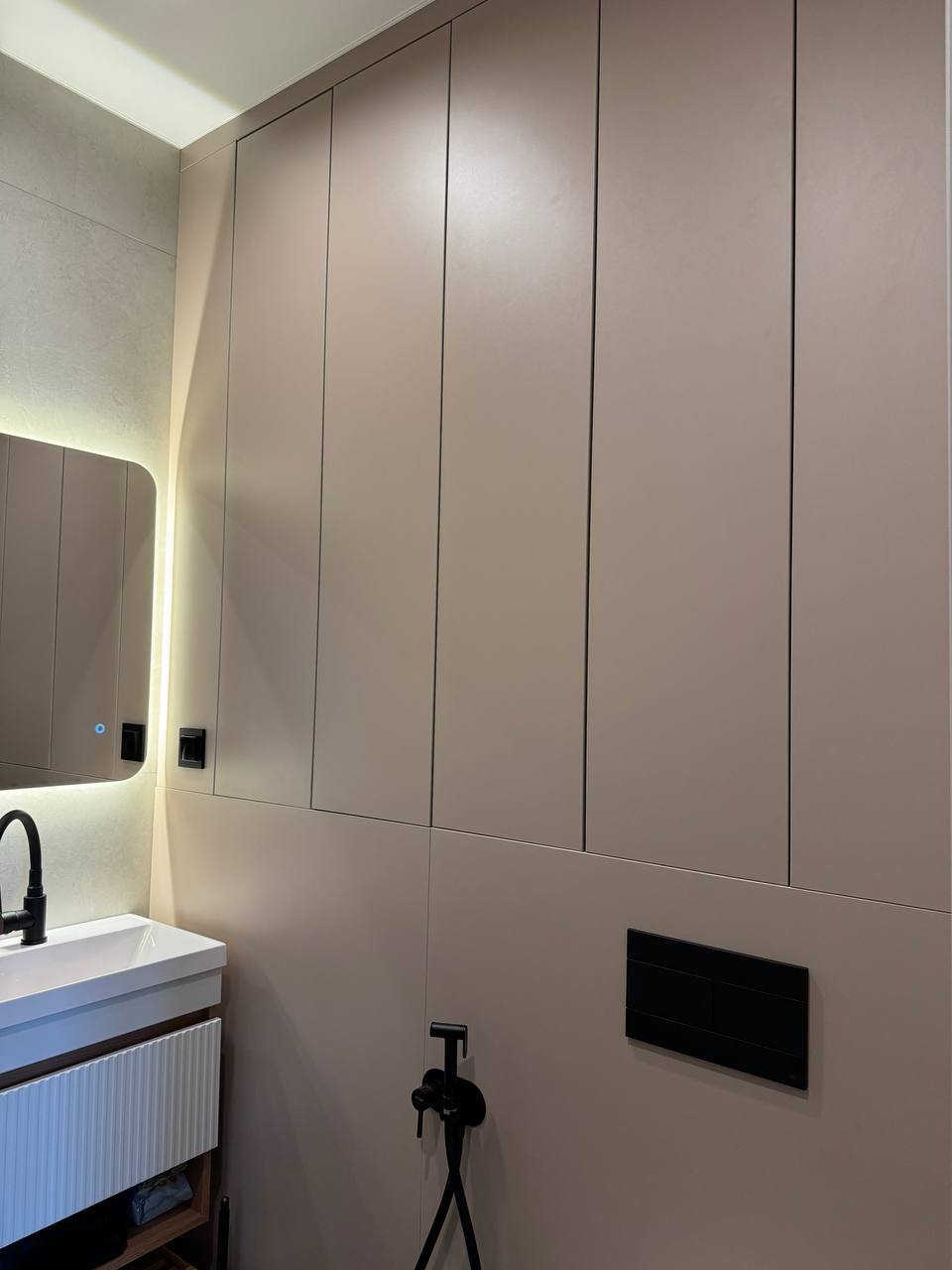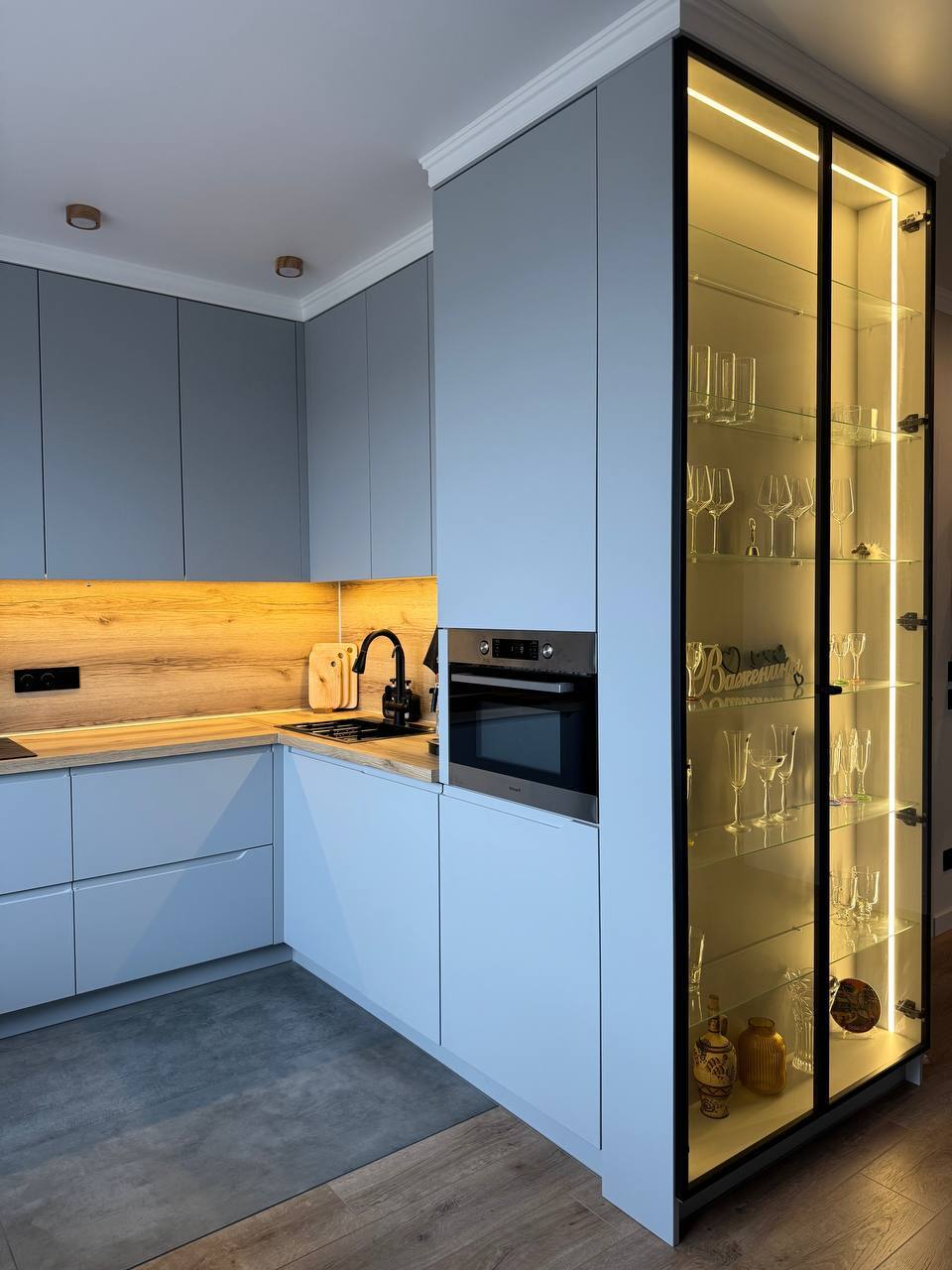 Квартира после капитального ремонта. Требовалось сохранить привычное расположение мебели со схожим функционалом, оставить привычный общий вид. Поэтому данный проект — переосмысление ушедшей мебели. Гармоничное сочетание графитового цвета и светлой деревянной текстуры через все основные комнаты.
