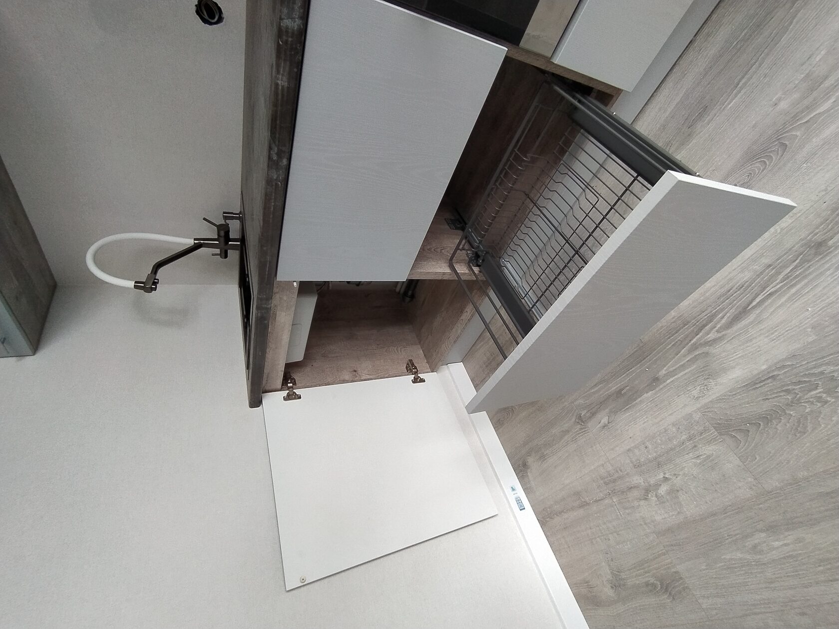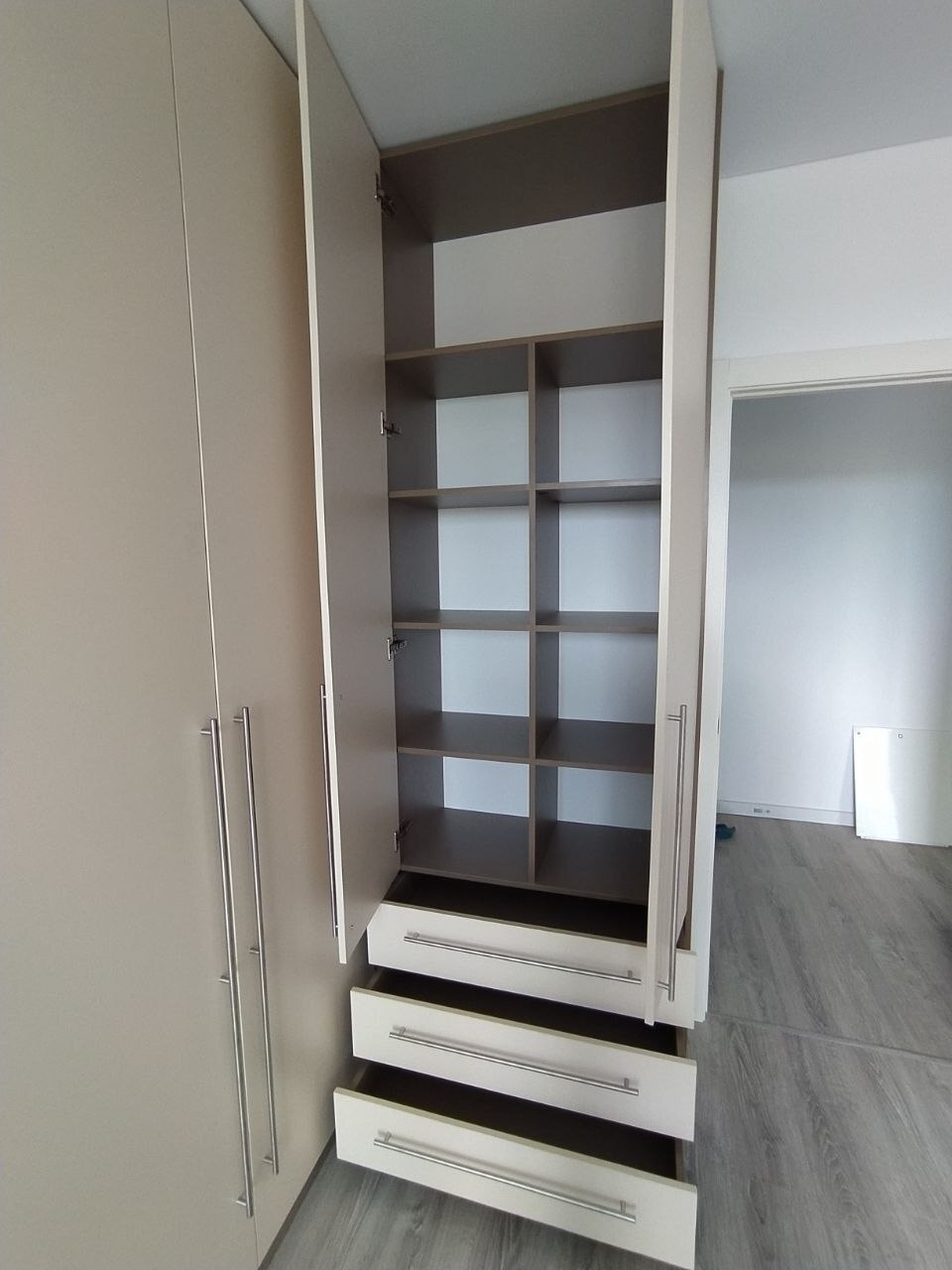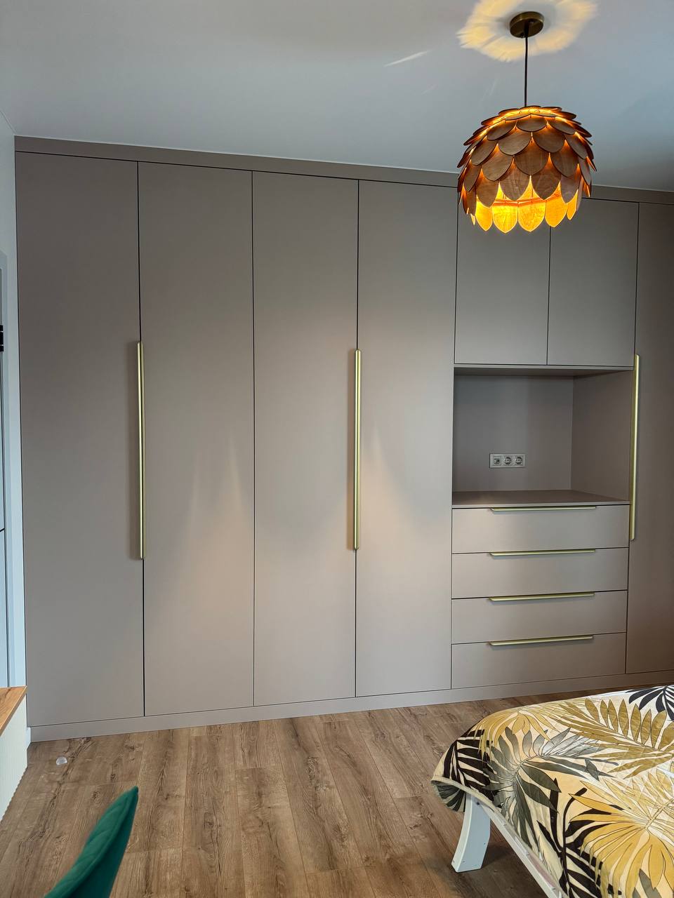 Квартиры с небольшой площадью требуют особого внимания к наполнению. Малые площади требуют от мебели максимального функционала. Кухня несмотря на маленькие размеры оснащена почти всеми элементами хранения: бутылочница, выкатная сушка, выкатные ящики. Шкаф в спальне способен вместить в себя и сезонные вещи, и домашние, и даже постельное бельё. Прихожая имеет внушительную вместимость, благодаря выкатным вешалкам.